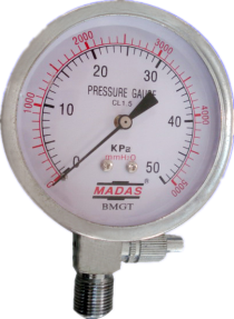 意大利MADAS(马达斯)MPG系列燃气微压表由测量系统(包括接头、波纹膜盒等)、传动机构(包括拔杆机构、齿轮传动机构)、指示部件(包括指骨、度盘及开关)、外壳(包括表壳、衬圈和表玻璃)所组成。其工作原理是基于波纹膜盒在被测介质的压力作用下,其自由端产生相应的弹性变形,再经齿轮传动机构的转动并放大,由固定于齿轮轴上的指针遂将被测在度盘上指示出来。MPG系列燃气微压表在接头部分在设置了指示开关,可防止过大造成对压力表损坏,同时还具有将指针调整到零位的功能。产品广泛用于气体管道终端用气压力显示,如调压箱、燃烧器、锅炉、烤炉、烘箱、厨具等工业设备用气量显示仪表。压力显示精度高、灵敏度强、外表亮丽、制作精美、外置手动指示开关是本系列产品的五大特点。