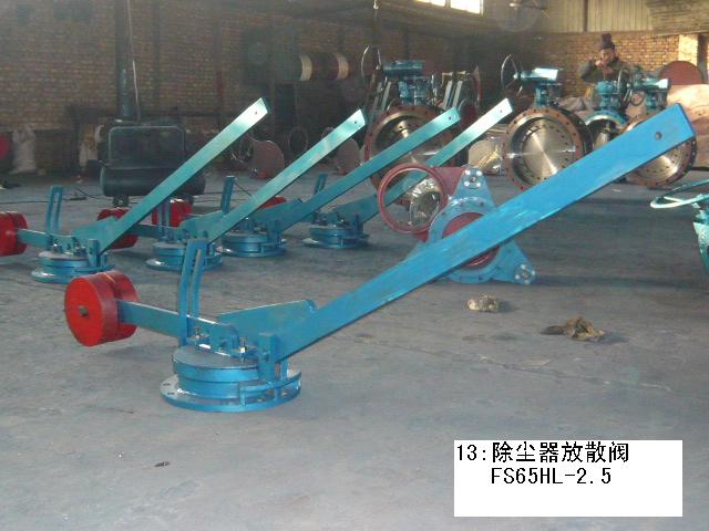 本阀由阀座、锥形、阀盖、阀杆、重锤、限制器等零件组成,阀杆为一杠杆机构,用阀杆的起落实现阀门的启闭,依靠重锤的重力使密封面吻合。因增加了限位调整装置,锥形阀盖重复定位精度高、密封可靠,适用于高炉及热风炉系统的放散系统。