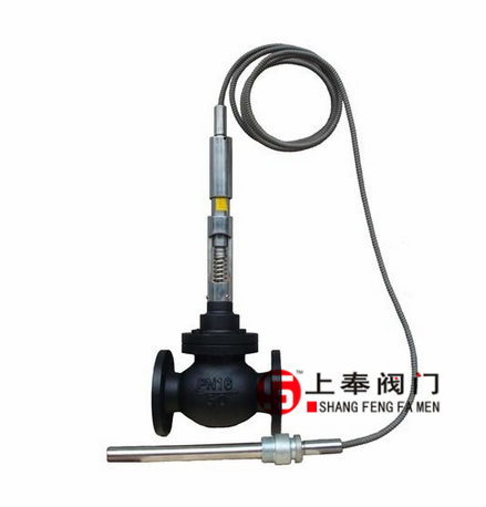 YZW型自力式温度调节阀利用液体受热膨胀及液体不可压缩的原理实现自动调节。温度传感器内的液体膨胀是均匀的,其控制作用为比例调节。被控介质温度变化时,传感器内的感温液体体积随着膨胀或收缩。被控介质的温度高于设定值时,感温液体膨胀,推动阀芯向下关闭阀门,减少热媒的流量:被控介质的温度低于设定值时,感温液体收缩,复位弹簧推动阀芯开启,增加热媒的流量。