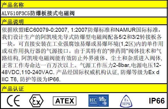 ACHEM两位五通两位三通板式防爆电磁阀ALV510F3C5
