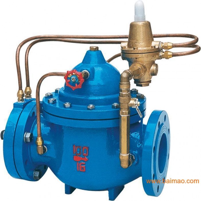 400X(L741X)型 PN10~PN25 流量控制阀是一种采用高精度先导方式控制流量的多功能阀门。适用于配水管需控制流量和压力的管路中,保持预定流量不变,将过大流量限制在一个预定值,并将上游高压适当减低,即使主阀上游的压力发生变化,也不会影响主阀下游的流量。