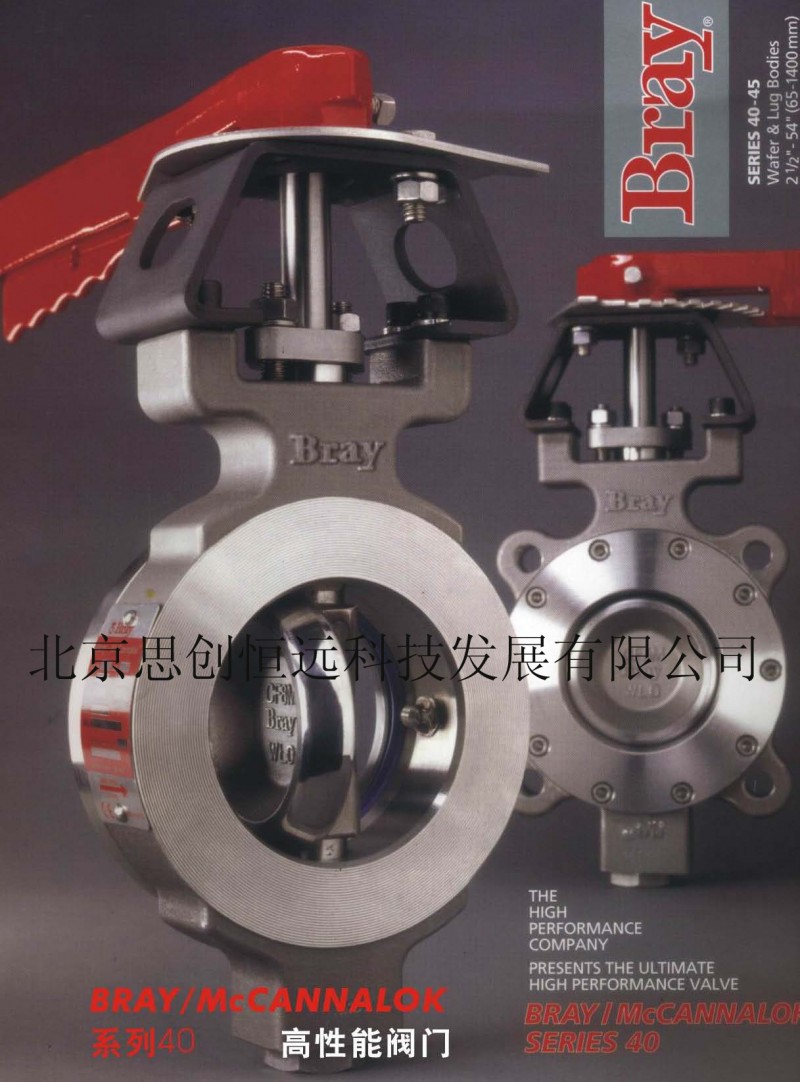 BRAY公司生产的S40-45系列高性能、高压、高温零泄漏蝶阀可应用在ANSI150,300,600标准额定压力下,独特的两件式阀座设计,具有一个O型圈增能器,它由RPTFE阀座整个包裹着,在高压、低压、真空工况下双向零泄漏。双偏心阀杆和阀板设计减轻阀座的磨损,保证整个压力范围内的双向气密封关闭功能,延长了阀座的使用寿命,操作力矩小。
