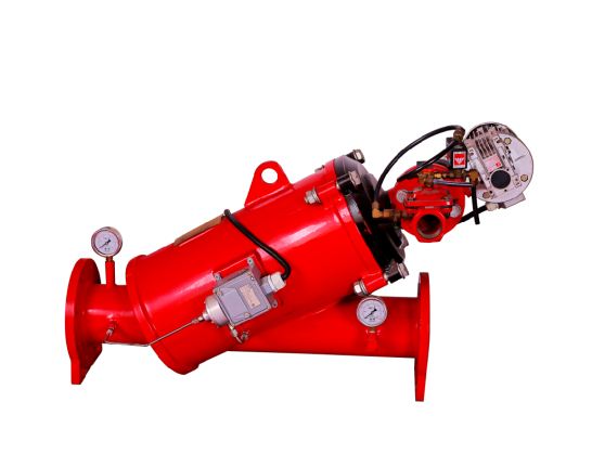 DS系列电动刷式过滤器是一种全自动清洗过滤器,在过滤器滤网内安装一套刷子,刷子由电机带动旋转,在过滤器端盖上安装一个电磁排污阀。清洗时,来自压差开关的信号传给控制盘,控制盘打开排污阀同时启动电机,带动刷子旋转刷掉污物杂质,在水力的作用下,通过排污阀排出过滤器。清洗无需断流。