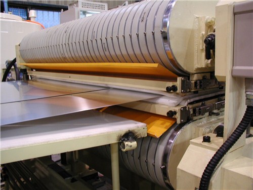 本设备的工作流程:本设备是将不锈钢卷板通过整平后定尺横剪的方式把钢板加工成客户需要尺寸的专用剪切设备。本设备的主要工作主机由开卷、整平、切边、NC定尺、液压高速剪床、集料等机构构成,中间辅以收纸、运料、废边卷取、缓冲、引导、覆膜装置、静电覆纸装置、输送、出料等装置。