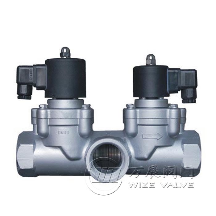 二进一出(换向型):1、2为进口,3为出口,通电1通向3,断电2通向3