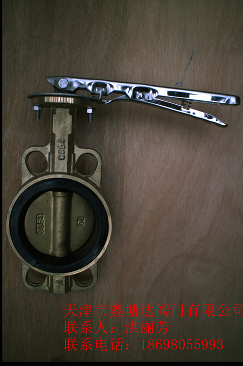 手柄对夹式全铜蝶阀结构紧凑,90°回转开关轻松,密封可靠,使用寿命长,广泛适用于各种不同类型工业管道中液体和气体(包括蒸气)的输送,适用于发生炉、煤气、天然气、液化石油气、城市煤气、冷热空气、化工冶炼和发电环保等工程系统中输送各种腐蚀性、非腐蚀性流体介质的管道上。