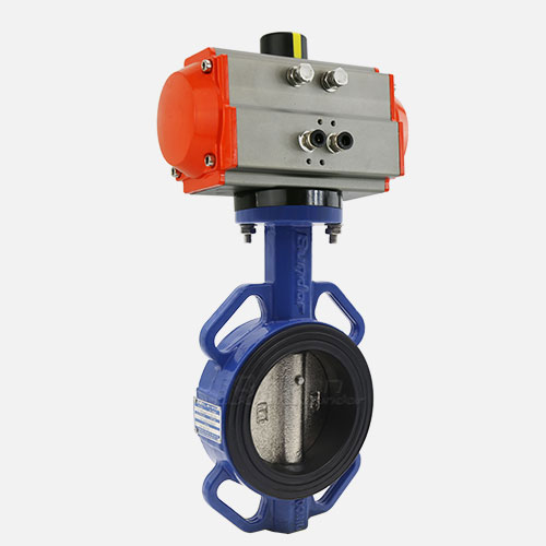 对夹式气动蝶阀90°回转开关轻松,密封可靠,使用寿命长,被广泛用于水厂、电厂、钢厂、造纸、化工、饮食等系统供排水中,作为调节和截止使用。