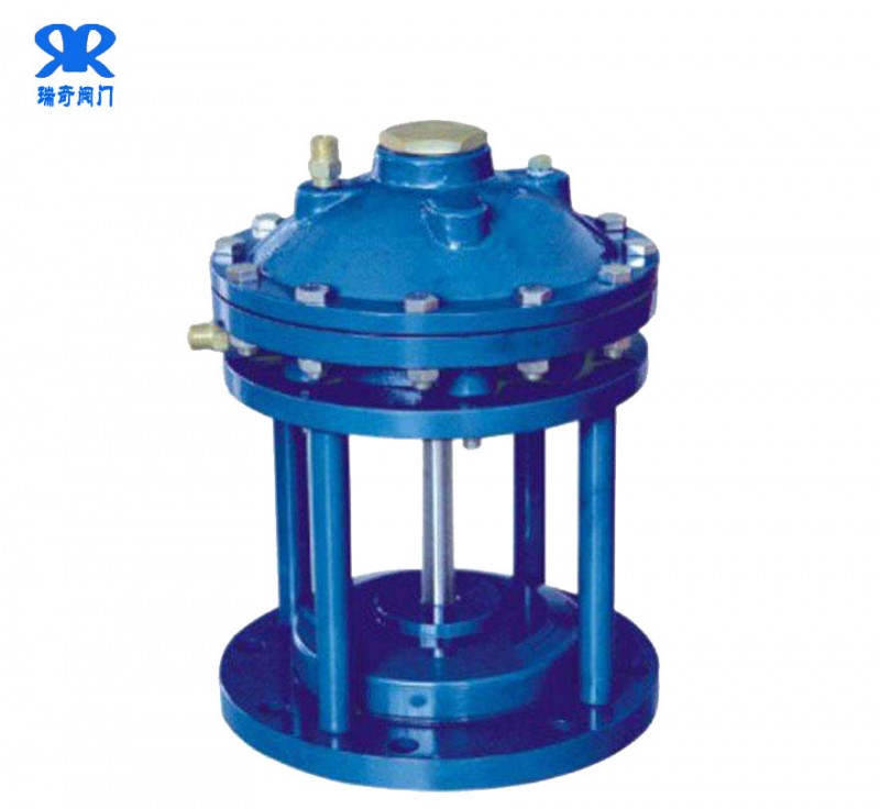 隔膜式池底卸泥阀安装在各类沉淀水池的底部,通过换向阀的控制排除池底的泥沙及污物。隔膜式池底泄泥阀安装在自来水公司或其它各类水池旁、水池中,以便随时排除池内泥沙。隔膜式池底泄泥阀的主要特点是采用双室隔膜传动机构替代活塞式,无运动磨损,隔膜式池底泄泥阀由液压缸和角式截止阀组合而成,液压缸内动力带动瓣升降,使阀体通道开或闭,以达到流体通断。液压缸的活塞密封件为L型皮碗,其密封性能好,经久耐用。阀瓣与阀座为软密封,密封性能好,无泄露。采用电动二位四通换向阀或手动二位四通换向阀集中控制,操作方便。工作原理及性能:隔膜式池底泄泥阀由阀体、液压缸、活塞、阀杆、阀瓣组成, 液压缸是液体工具。液体作为动力,活塞、阀杆作为开关。开启只需一分钟可打开阀板,此阀必须配用手动换方阀或电磁阀可远距离控制排泥阀开关。优点:1.隔膜式池底泄泥阀启闭速度快,排泥效果好。2. 利用自来水压力源、液动启闭阀门,投资少,降低设备投资费。3.编程PLC控制程序,可实现远控、自控、集中控制管理,减轻工人劳动强度。4.无噪音,阀门简便,省安装费、省维修费。5、可实行信号反馈,在中控室便可了解阀门的开启状况。排泥阀一般有以下结构特点:阀盖自带螺杆,水深度浅时可直接用手柄操作;阀板成锥拱形,自带导向,开启操作力小;螺杆及密封面采用锡青铜,耐腐、耐磨。可与手电两用启闭机配套使用进行微机控制。该阀的主要特点是采用双室隔膜传动机构替代活塞式,无运动磨损,寿命长。 隔膜式池底泄泥阀产品由液压缸和角式截止阀组合而成,液压缸内动力带动瓣升降,使阀体通道开或闭,以达到流体通断。 液压缸的活塞密封件为L型皮碗,其密封性能好,经久耐用。阀瓣与阀座为软密封,密封性能好,无泄露。(排泥阀)采用电动二位四通换向阀或手动二位四通换向阀集中控制,操作方便。