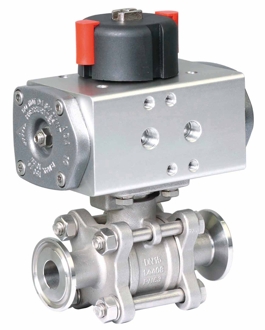 卫生级球阀皆经过精密的检验流程和严格的品质管理。加工过程中,流道经过精密抛光和灭菌处理。其结构是由三部分阀壳组成,由外部四只较长螺栓从两端夹住中间阀体与阀球而成。密封圈为全封闭式紧紧包裹住阀球,无空间和死角。两端为卡箍连接方便拆卸、清洗、维修。工作原理也是通过气动执行器90度的旋转来带动球体的旋转以达到介质的流通与阻断。