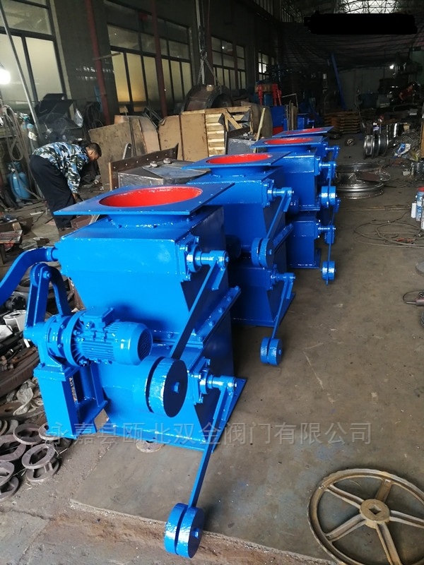 双层重锤翻板阀的阀板在物料重力作用下自动开启,物料下落后,配重杠杆系统使阀板自动复位,防止野风吹入,从而完成物料的输送。