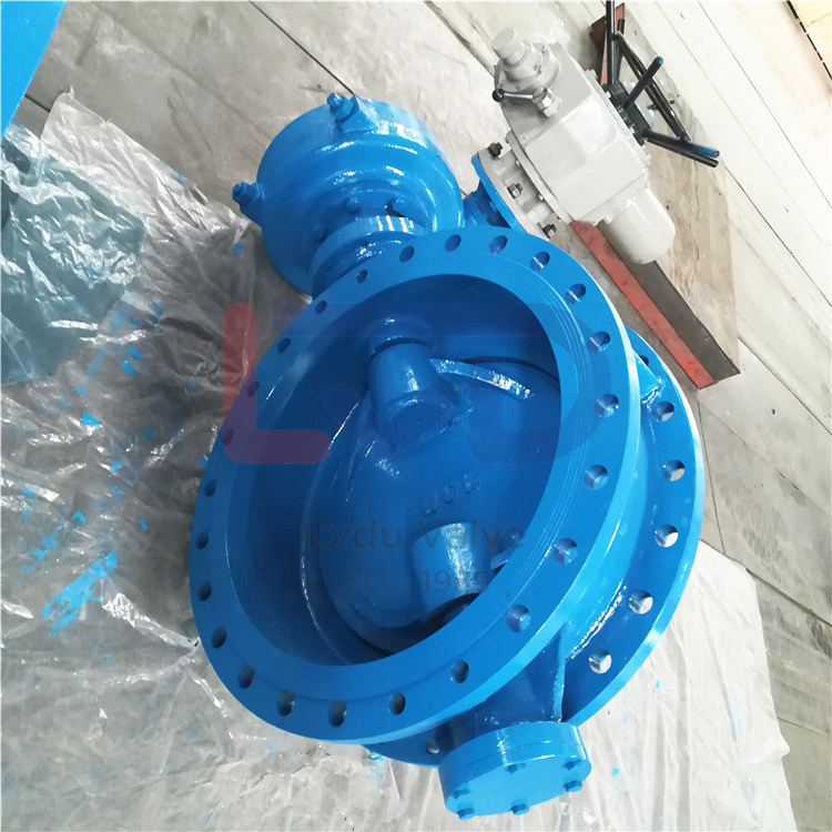 3、硬密封法兰蝶阀采用双偏心球面密封结构,关闭时阀板密封面随偏心位移靠向阀体密封圈进行挤压密封,密封圈受压均匀,密封性能可靠;开启时阀板只需转过很小一个角度,阀板密封面就与阀体密封圈脱离,减少了密封面之间的磨擦,使阀门经久耐用。