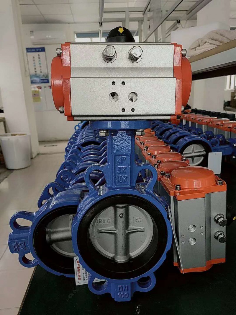 气动蝶阀是由气动执行器和蝶阀组成。气动蝶阀是用随阀杆转动的圆形蝶板做启闭性,以实现启用动作的气动阀门主要做截断阀使用,亦可设计成具有调节或段阀兼调节的功能,目前蝶阀在低压大中口径管道上的使用越来越多,气动蝶阀优点主要是,结构简单,体积小重量轻,造价低,气动蝶阀该特点尤其显著,安装在高空暗道,气动蝶阀经过二位三通(或者二位五通)电磁阀控制操作方便,也可以调节流量介质。