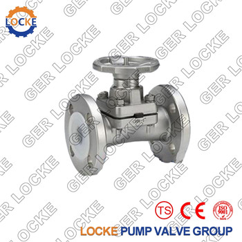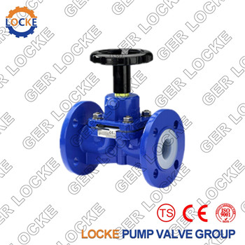 德国洛克《DE LOCKE》进口隔膜阀的结构分为堰式隔膜阀、直流式隔膜阀、直通式隔膜阀和三通式隔膜阀,是一种特殊形式的截断阀,它的启闭件是一块用软质材料制成的隔膜,把阀体内腔与阀盖内腔及驱动部件隔开,用于控制非腐蚀性或一般腐蚀性以及强腐蚀性介质,阀体内腔表面无衬里或覆有可选择的各种氟塑料和各种橡胶,适用于各种不同工作温度和流体管路。