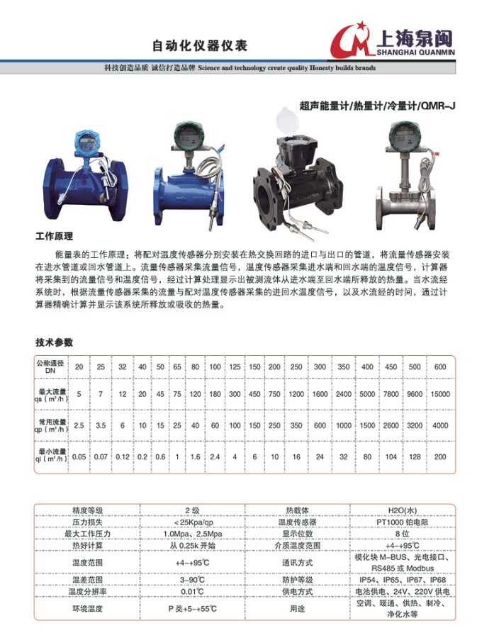 QMNLJ-16Q系列冷量流量计、可广泛应用于民用住宅小区、写字楼和企事业单位集中供热、供暖、空调、医院、工厂等冷量的计量。