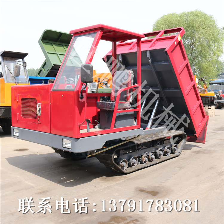配有液压起降、自卸功能,且自卸角度可调,降低劳动强度,提高运输效率;配备电启动。结构简单,传动平稳,手柄集中,操作方便省力,易实现自动化控制;底盘支重轮、导向轮、拖带轮采用滚力轴承,定期加注一次黄油润滑,免使用中维护和保养。
