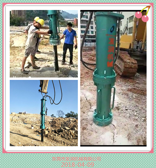 工地客户是开铁矿的石头,因为比较坚 炮锤打不动,只能使用 发润分裂机,开了四个孔以后,成功将石头分裂下来。达到客户满意的效果了 调成非常成功。