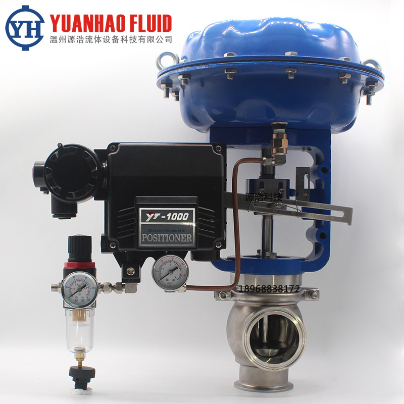 源浩调节阀 不锈钢304薄膜式气动调节阀 带三联件气动快装