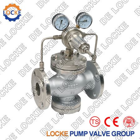 减压阀是通过调节,将进口压力减至某一需要的出口压力,并依靠介质本身的能量,使出口压力自动保持稳定的阀门。减压阀的作用原理是靠阀内流道对水流的局部阻力降低水压,水压降的范围由连接阀瓣的薄膜或活塞两侧的进出口水压自调节。管道上如一次减压不够可采取二次减压;减压系统通常需采取一备一用,防止因现用减压阀故障而破坏系统或下游设备。