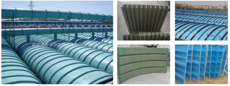 我公司污水池除臭封闭盖板采用玻璃钢材料成型,具备耐腐蚀、轻质高强、耐老化、可设计性、安装方便、使用寿命长等优点。根据用户的要求及污水池的尺寸,可做弧形盖板和平盖板等其它形状,其颜色也可根据具体需要,满足用户的不同需求。