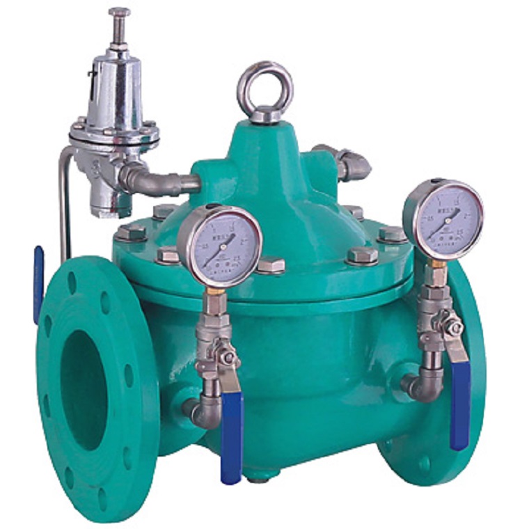 当阀门从进口端给水时,水通过微型过滤器、针阀、单向阀进入主阀控制室,再经过球阀排水至下游。因为针阀开度小于球阀开度,即主阀控制室的排水速度大于进水速度,因此控制室压力降低,作用于主阀盘下端的进口压力打开主阀向下游供水。