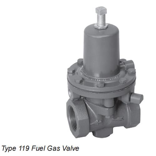 Fisher ™ Material of Fisher 119 switch over valve:Threaded NPT cast iron body with aluminum spring case, bonnet, seat ring and disk holder. Nitrile (NBR) disk and O-ring. Nitrile (NBR) diaphragm. Approximate shipping weight is 7 pounds.Type 119EZ comes with 1 NPT. Opening speed adjustment with integrated check valve to allow for quick closing speed.