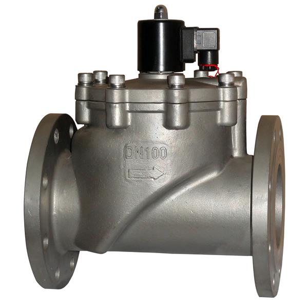 通电时,电磁力把先导孔打开,上腔压力迅速下降,在活塞周围形成上低下高的压差,流体压力推动活塞向上移动,阀门打开;断电时,弹簧力把先导孔关闭,入口压力通过旁通孔迅速进入活塞上腔室,并形成下低上高的压差,流体压力推动活塞向下移动,关闭阀门。