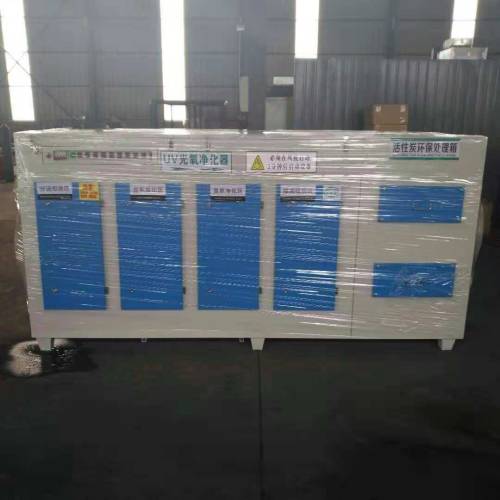 UV光氧活性炭一体机结合了UV光解氧化技术和活性炭吸附,相比分开的两种设备,净化效率更高,成本降低,可以处理多种有机废气和恶臭废气,如:醇类、醛类、苯类、氨气等等有机废气和恶臭废气。该设备的技术原理是结合了紫外线光解氧化技术和活性炭吸附技术的综合体。在与两个单独的废气设备相比,它具有更高的废气净化效率和更低的综合成本,并且可以处理各种有机废气和恶臭废气,活性炭光氧一体机的作用原理是利用臭氧UV紫外线光束分解空气中的氧分子产生游离氧,即活性氧,因为游离氧所携带正负电子不平衡所以与氧分子结合,进而产生臭氧。由于臭氧对有机物具有的氧化作用,并对恶臭气体及其它刺激性异味气体有很强的去除效果。