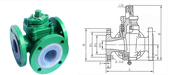 进口衬氟三通旋塞阀结构及原理图: