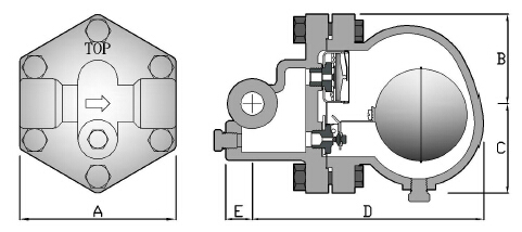 5.頂蓋上具有檢查孔,可另加裝檢查凡爾,可立知該疏水閥正常與否。