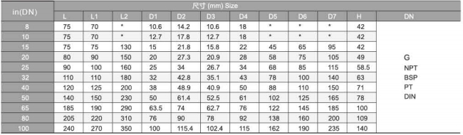 工作压力:1/4"-2"1000PSI 21/2"-3"800PSI