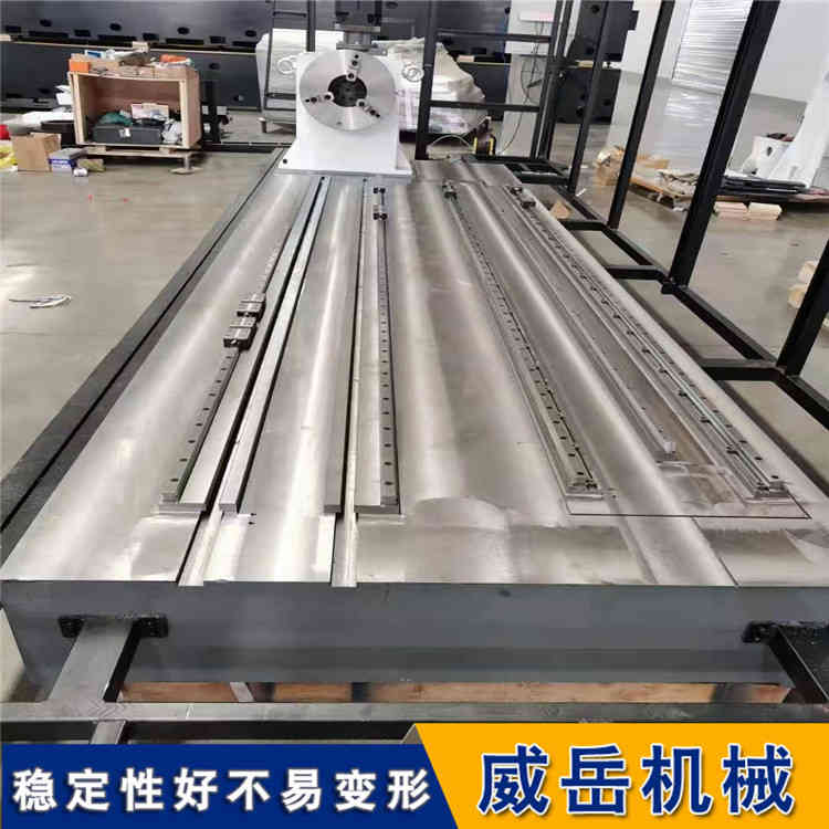 大型铸铁平台粘砂大致可分为机械粘砂、化学粘砂、损害粘砂、热粘砂。机械粘砂又称为金属液透粘砂是由液态金细管透或气相透方式钻入型腔表面砂粒间隙,在大型铸铁平台表面形成的金属和砂粒机械混合的粘附层。两种力的对比和变化决定粘砂倾向,即必定有一种力促使液态金属渗入砂型孔隙,一种力阻止渗入,透动力,即促使大型铸铁平台金属液渗入砂型孔隙的力,主要铸型的动压力和静压力,透阻力,即阻止金属液渗入砂型孔隙的力,主要有两种:一是砂型孔隙的阻力,二是砂型孔隙中的气背压。
