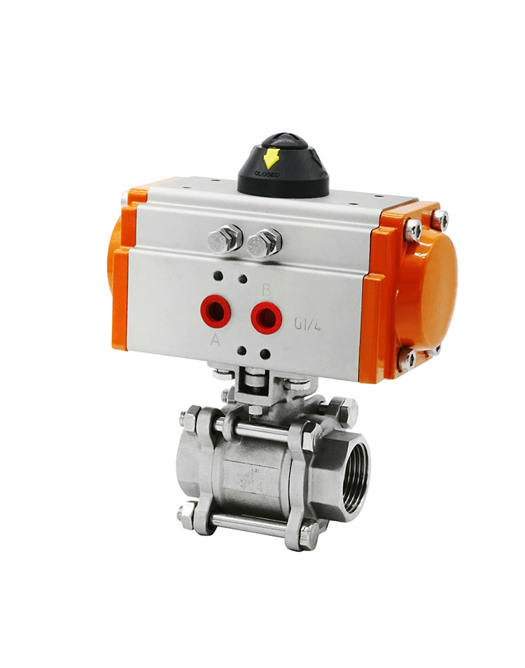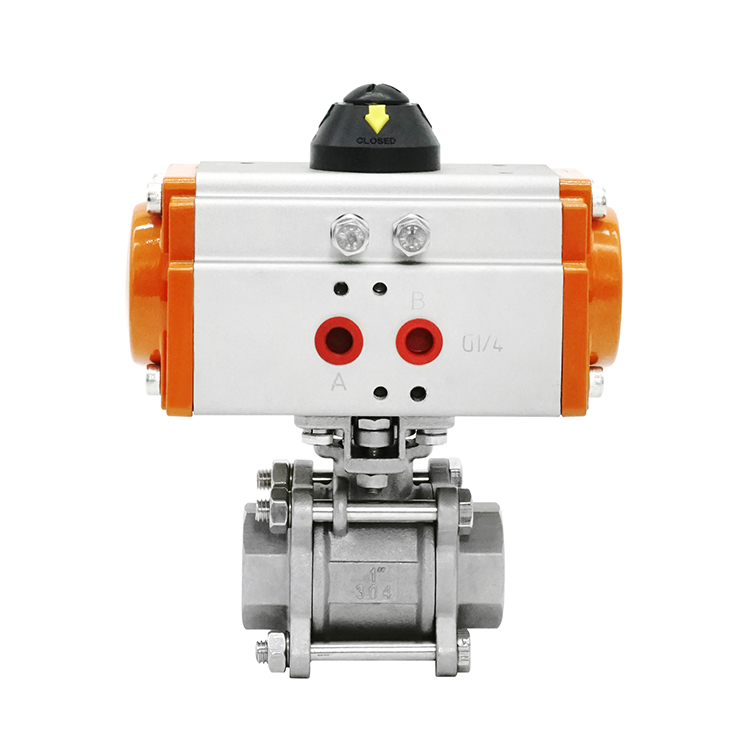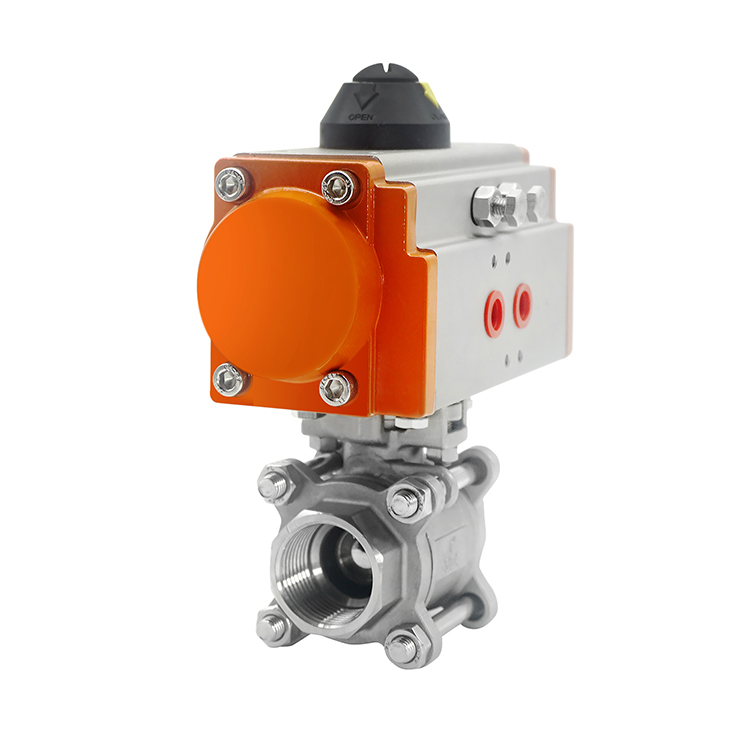 气动不锈钢螺纹球阀的工作原理是靠旋转阀恋来使阀门畅通或闭塞。球阀开关轻便,体积小,可以做成很大口径,密封,结构 简单,维修方便,密封面与球面常在闭合状态,不易被介质冲蚀,在各行业得到广泛的应用。