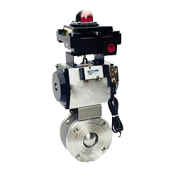 Q671 气动对夹球阀是气动球阀中的一种,是引进意大利技术进行国产化设计而发展出的新一代超短法兰距球阀,球芯通道形状有矩形、V形及O形。该产品具有结构紧凑、体积小、重量轻、安装方便等特点,可广泛应用在石油、化工、冶金、电站、轻工等领域,对油、水、气及纸浆或纤维状流体进行自动调节或切断控制。Q671 气动球阀由气动双活塞齿轮齿条执行器和超短法兰距球阀组合而成,阀体部分同“1”电动球阀阀体一样。气动活塞执行机构分有弹簧式和无弹簧式两种。故障下要求阀全开或关闭时配有弹簧式(靠弹簧的恢复张力复位),故障下要求保位时,配无弹簧式。它主要由缸体、弹簧、活塞、活塞杆、前后缸盖、齿条、输出轴等零部件组成。对两位开关阀,需配电磁阀以及行程开关等;对比例式调节阀,需配定位器。