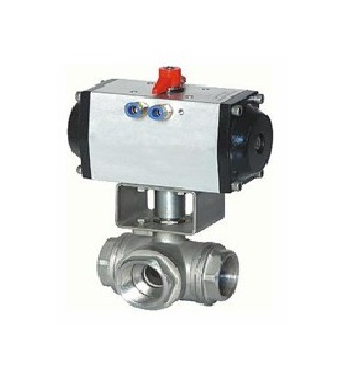 气动三通螺纹球阀分L型和T型。L型三通球阀适用于介质流向的切换,能使相互垂直的两个通道连通:T型三通球阀适用于介质的分流、合流或流向切换,T型孔道可以使三个通道互相连通或使其中两个通道连通,三通球阀一般采用两个阀座结构,亦可根据用户要求采用四阀座结构。