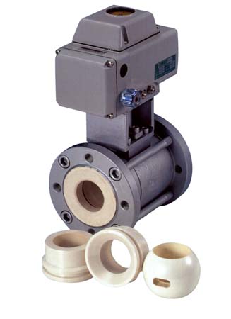 耐磨耐腐蚀全衬陶瓷球阀,其与介质接触部分全部采用耐腐蚀性能极强的结构陶瓷制作,具有金属阀门无法比拟的耐腐蚀性能,是强腐蚀场合下钛阀、蒙乃尔阀的理想替代产品,同时具有极强的耐磨损、耐冲蚀性能,使用寿命是钛阀的2~4倍,特别适合于电厂脱硫系统、化肥厂输送浆液以及焦化、造纸等强腐蚀介质的场合。