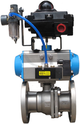 川速阀门生产的FBQ641气动防爆球阀由球体、气动执行机构(双作用/单作用)、防爆限位开关、防爆电磁阀、空气过滤器等组成。配以减压阀及0.4-0.7MPa气源可实现开关操作,并送出二对无源触点信号指示阀门的开关。气动防爆球阀执行器分单作用和双作用两种型号。单作用式的独特优点是一旦动力源发生故障,气动防爆球阀将按控制系统的要求自动处于开启或关闭的位置。气动防爆球阀可广泛应用于石油,化工、环保、冶金、电力、化纤、教学设备、轻工、制药、造纸、高压设备等工业自动控制。