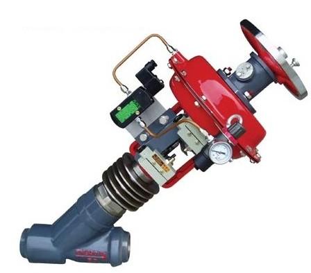 气动Y型疏水阀由新系列气动薄膜执行机构和Y型疏水阀二部分组成,Y型疏水阀是具有特殊结构的调节阀体二端为焊接式,适用于特定的配管。气动Y型疏水阀执行机构有正、反二种作用形式;当信号压力增加,推杆伸出膜室的叫正作用,与阀配合构成气关式。当信号压力增加,推杆退入膜室的叫反作用,与阀配合构成开式。