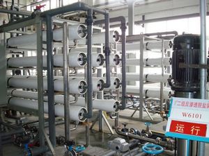 ▼工艺五:石英砂+活性炭+软化+保安过滤器+一级反渗透+二级反渗透+臭氧灭菌/紫外线杀菌(原水电导率>1000μS/cm时适用)