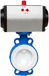 川速流体生产的D641F46气动衬氟蝶阀(亦称耐腐蚀气动蝶阀)是由气动活塞式执行器及四氟密封蝶阀组成。适用于温度≤200℃,有腐蚀性或洁净度有一定要求工况,气动衬氟蝶阀是在过流部件、阀体、蝶板、阀杆上采用衬里技术衬里较厚的高分子材料,防腐蚀性能优良,可适用于任何浓度的酸、碱、盐及氧化剂、还原剂、有机溶剂等介质,气动衬氟蝶阀是 化工、石油、医药、食品、钢铁冶炼、造纸、水电等系统的气体、液体、半流体的管路和容器上作截流和调节设备使用的理想产品。气动衬氟蝶阀全衬聚四氟乙烯(F4)和聚全 氟乙丙烯(F46)氟塑料衬里阀,具有耐腐蚀、无泄漏、寿命长等优点。气动衬氟蝶阀适用于浓硫酸、盐酸、硝酸、氢氟酸、王水、各种有机酸、强酸、氧化性介质或高温烯硫酸、高温浓醋酸、酸碱交替及多种有机溶剂和其它强腐蚀性 介质。