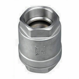 立式止回阀正常处于关闭状态,由于管线中进口端介质的压力作用,而克服弹簧阻力使阀门开启。当进口端介质压力低于出口端时,弹簧将阀芯推向阀座而使阀门关闭,阻止介质逆流,故起止回作用。