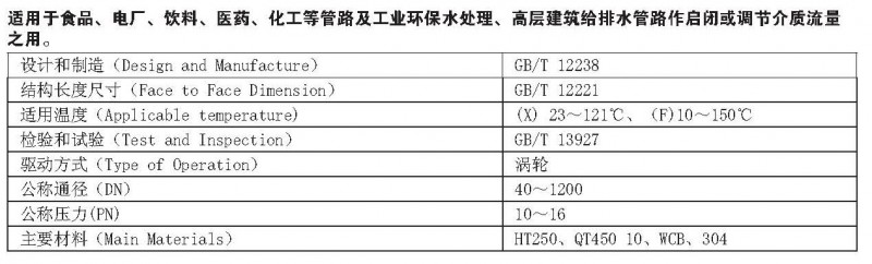 适用于食品 、电厂、饮料、医药、化工等管路及工业环保水处理、高层建筑给排水管路作启闭或调节介质流量之用
