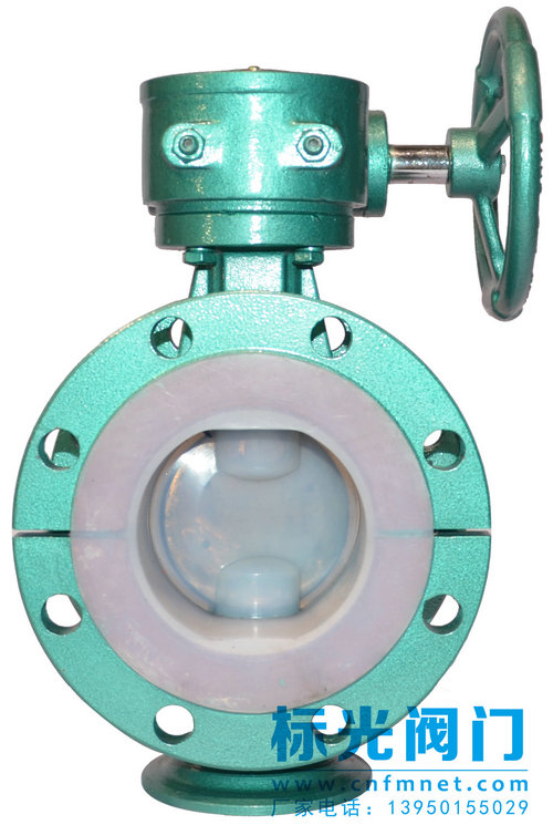 可承受"除熔融碱金属和元素氟"外的任何介质腐蚀。全衬里型法兰式蝶阀,采用对分两片阀式组合,阀座与阀体内衬一体化,阀门工作时,只有全塑阀座与衬塑蝶板与介质接触,衬氟法兰蝶阀阀杆和蝶板(锻)为一体,表面均匀包裹一层FEP.阀体通道内表面光滑,流体阻力小, 额定流量系数值高,流通能力强,扭矩适中,采用四级密封结构并在密封面处配以耐温抗老化SI橡胶的弹性衬垫阀座,完全达到介质的零泄露。