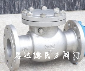 8、旋启式止回阀不宜制成小口径阀门、可以做成很高的工作压力,公称压力可达到42MPa,而且公称通径也可以做到很大,*大可以达到2000mm以上。根据壳体及密封件的材质不同可以适用任何工作介质和任何工作温度范围。介质为水、蒸汽、气体、腐蚀性介质、油品、药品、等。介质工作温度范围在-196--800℃之间;