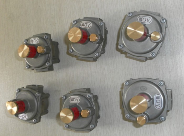 此类整压阀是即使在低压差的情况下也能驱动的,小型大流量整压阀。可适用于家庭,餐饮节能事业的厨房设备,工业燃烧器等其他特殊压力的燃气设备。型号有:SGX-10ZA SGX-15NZ SGX-20NZ SGX-25NZ SGX-40Z SGX-50Z ,进口压力范围:1~10KPA,出口压力范围:-0.05~+0.05,流量范围:3~100立方/小时;SG-24AZ SG-32BZ SG-36AZ ,入口压力范围:5.8~35KPA,出口压力:-0.2~+0.2KPA,流量:30~150立方/小时。