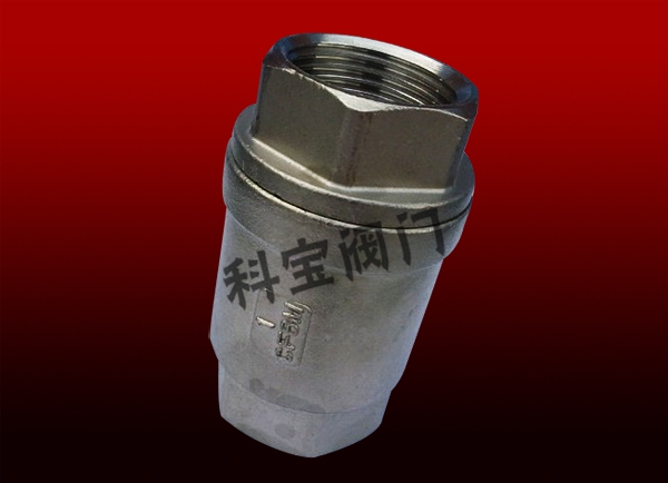 不锈钢立式内螺纹止回阀精度高,外观美,造型小,带有弹簧装置,垂直与水平安装均可等特点.主要适应管道系统中防止介质倒流使用。