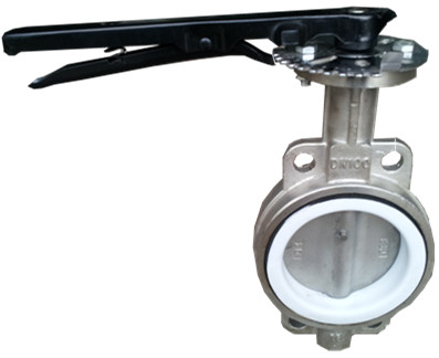 不锈钢对夹中线蝶阀主要由阀体、转轴、阀板、阀座及驱动机构(手柄、蜗轮蜗杆、气动装置或电动装置)等组成,靠驱动机构带动转轴及阀板旋转以实现启闭和控制流量的目的。对夹式蝶阀特点如下:
