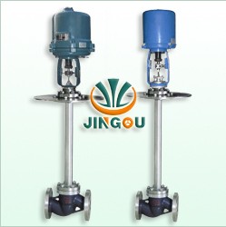 本公司的DWZRHP电动低温调节阀是采用引进型电动执行器与超低温调节阀阀体组成。执行器内含饲服功能,接受统一的4-20mA或 1-5V·DC的标准信号,将电流信号转变成相对应的直线位移,自动地控制调节阀开度,达到对管道内流体的压力、流量、温度、液位等工艺参数的连续调节。电动低温调节阀适合于低于0~-196℃状态下工作,由电动执行机构和带长颈接管的阀体组成,长颈接管的作用是使阀杆密封出接近常温下工作,并减少外界热能传入。为减少传递,长颈采用薄壁结构。