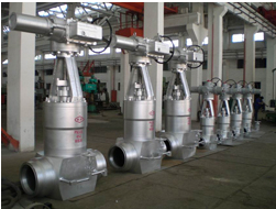 闸阀的启闭件是闸板,闸板的运动方向与流体方向相垂直,闸阀只能作全开和全关,不能作调节和节流。闸板有两个密封面,*常用的模式闸板阀的两个密封面形成楔形、楔形角随阀门参数而异,通常为50,介质温度不高时为2°52'。楔式闸阀的闸板可以做成一个整 体,叫做刚性闸板;也可以做成能产生微量变形的闸板,以改善其工艺性,弥补密封面角度在加工过程中产生的偏差,这种闸板叫做弹性闸板。闸阀关闭时,密封面可以只依靠介质压力来密封,即依靠介质压力将闸板的密封面压向另一侧的阀座来保证密封面的密封,这就是自密封。大部分闸阀是采用强制密封的,即阀门关闭时,要依靠外力强行将闸板压向阀座,以保证密封面的密封性。闸阀的闸板随阀杆一起作直线运动的,叫升降杆闸阀亦叫明杆闸阀。通常在升降杆上有梯形螺纹,通过阀门顶端的螺母以及阀体上的导槽,将旋转运动变为直线运动,也就是将操作转矩变为操作推力。开启阀门时,当闸板提升高度等于阀门通径的1:1倍时,流体的通道完全畅通,但在运行时,此位置是无法监视的。实际使用时,是以阀杆的顶点作为标志,即开不动的位置,作为它的全开位置。为考虑温度变化出现锁死现象,通常在开到顶点位置上,再倒回1/2-1圈,作为全开阀门的位置。因此,阀门的全开位置,按闸板的位置即行程来确定。有的闸阀,阀杆螺母设在闸板上,手轮转动带动阀杆转动,而使闸板提升,这种阀门叫做旋转杆闸阀或叫暗杆闸阀。