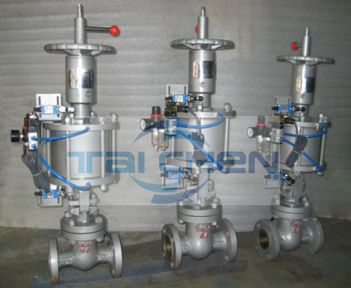它带手动气动调节闸阀由执行机构和调节机构组成。执行机构是调节阀的推力部件,它按控制信号压力的大小产生相应的推力,推动调节机构动作。阀体是气动调节阀的调节部件,它直接与调节介质接触,调节该流体的流量。