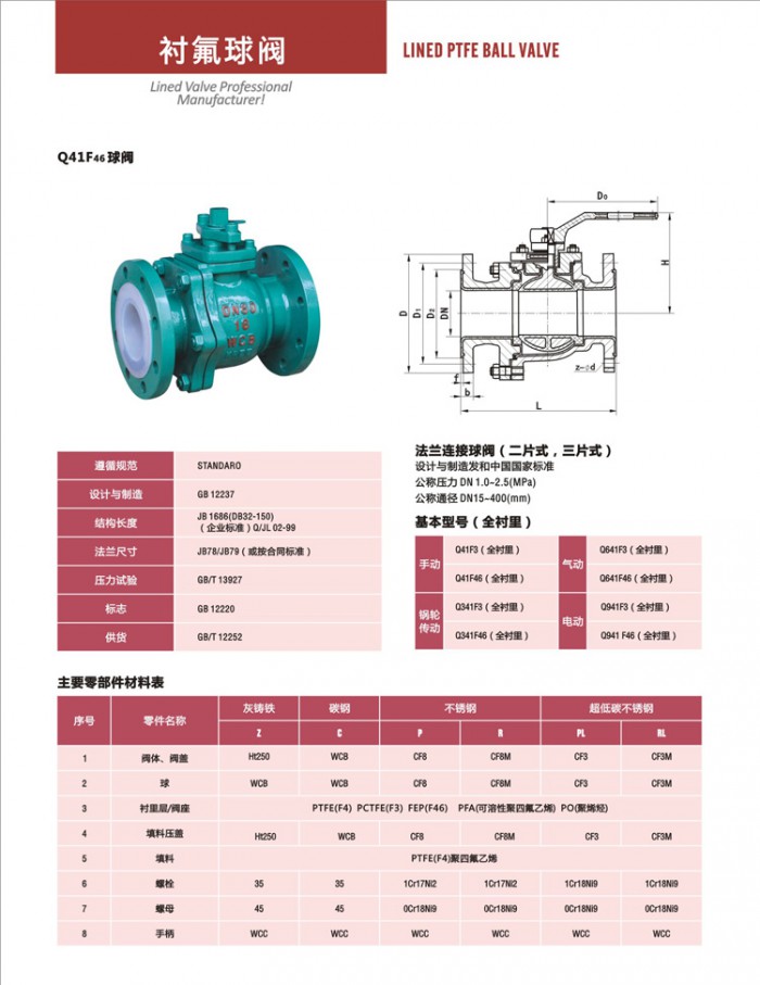 3、完全可以代替价格昂贵的稀有金属,耐腐蚀寿命可提高5-10倍。目前公司生产的衬氟球阀适用于各类具有强腐蚀性介质的工业管路系统中做启闭装置。